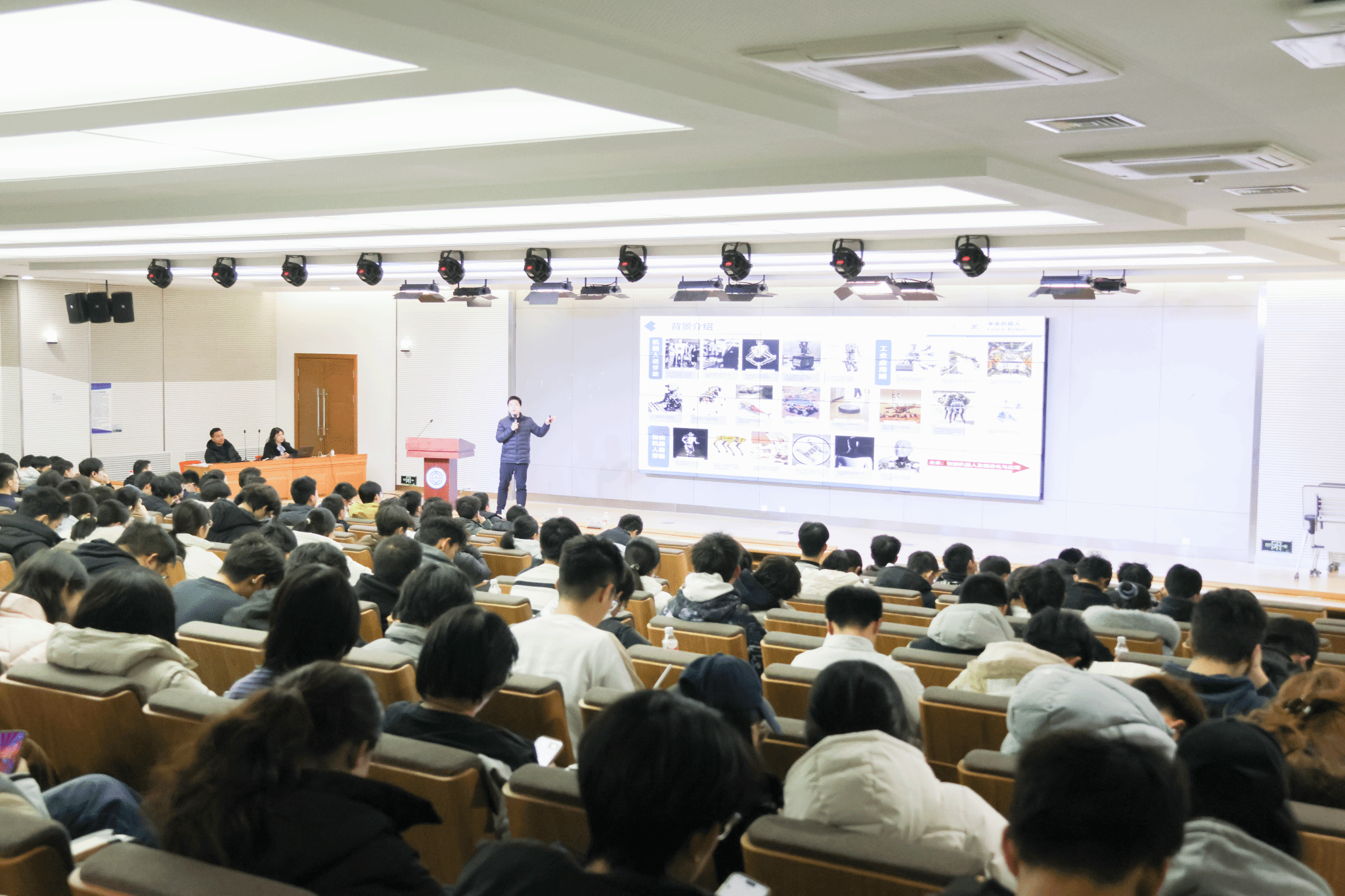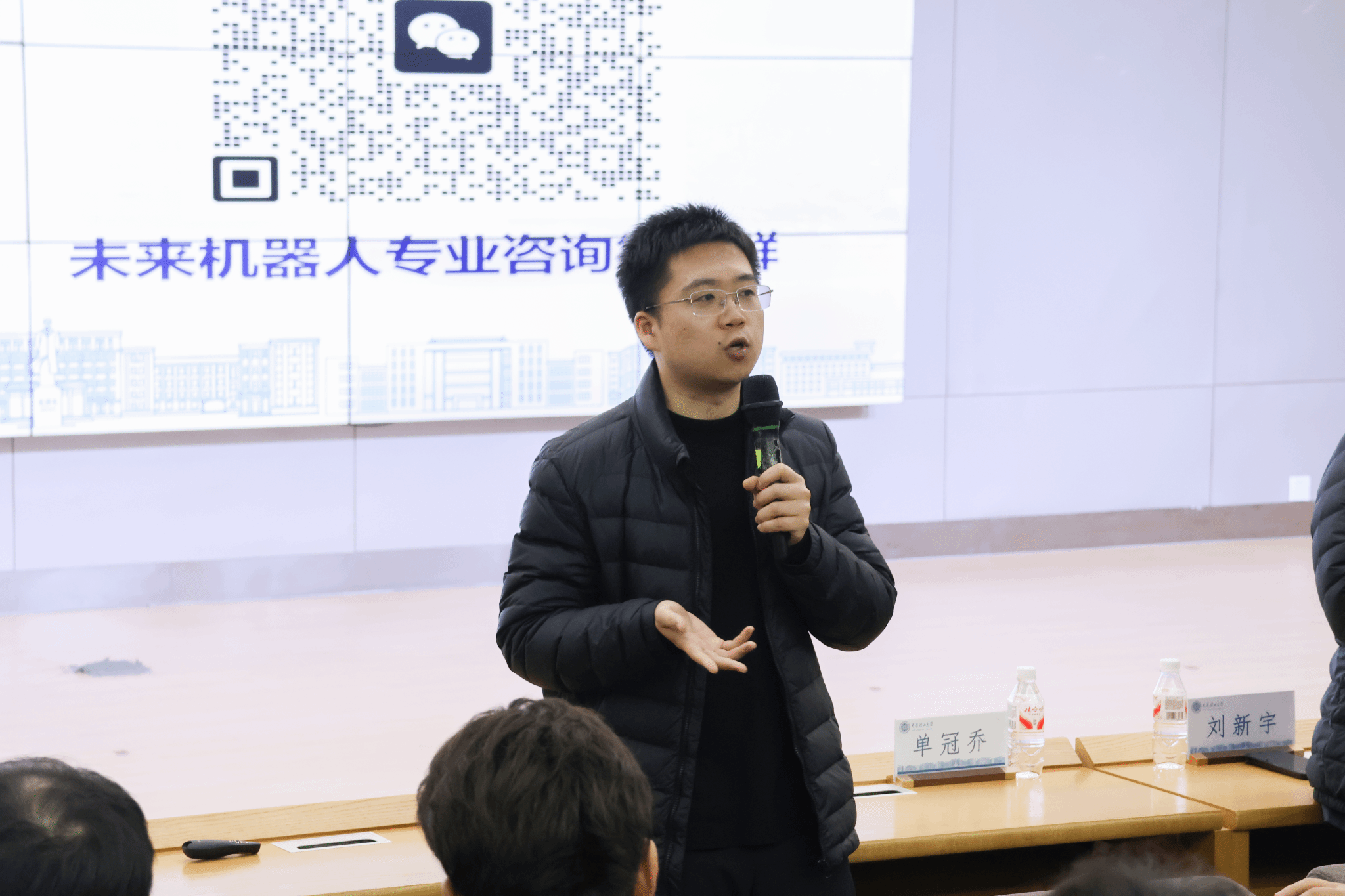 3月9日晚,加拿大工程院院士刘新宇亲临现场与单冠乔教授一同带来《智启未来,机驭新生——未来机器人专业宣讲会》。